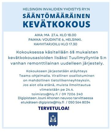 Helsingin Invalidien Yhdistys ry (HIY) edistää fyysisesti vammaisten henkilöiden yhdenvertaisuutta ja valvoo heidän oikeuksiaan yhteiskunnassa.