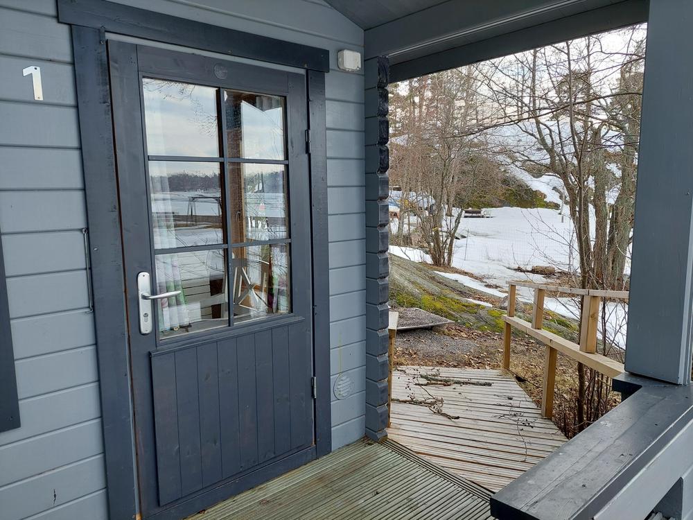 Mökeissä nro: 1, 3, 4, 5, 8, 9 on luiska, muihin mökkeihin (6, 7, 13, 14, 15) on rappuja.