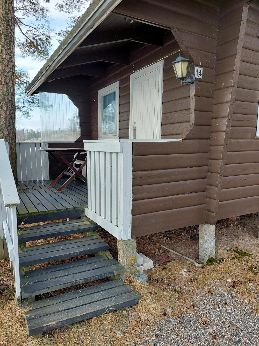 Mökeissä nro: 1, 2, 3, 5, 8, 9 on luiska, muihin mökkeihin (6, 7, 13, 14, 15) on rappuja.