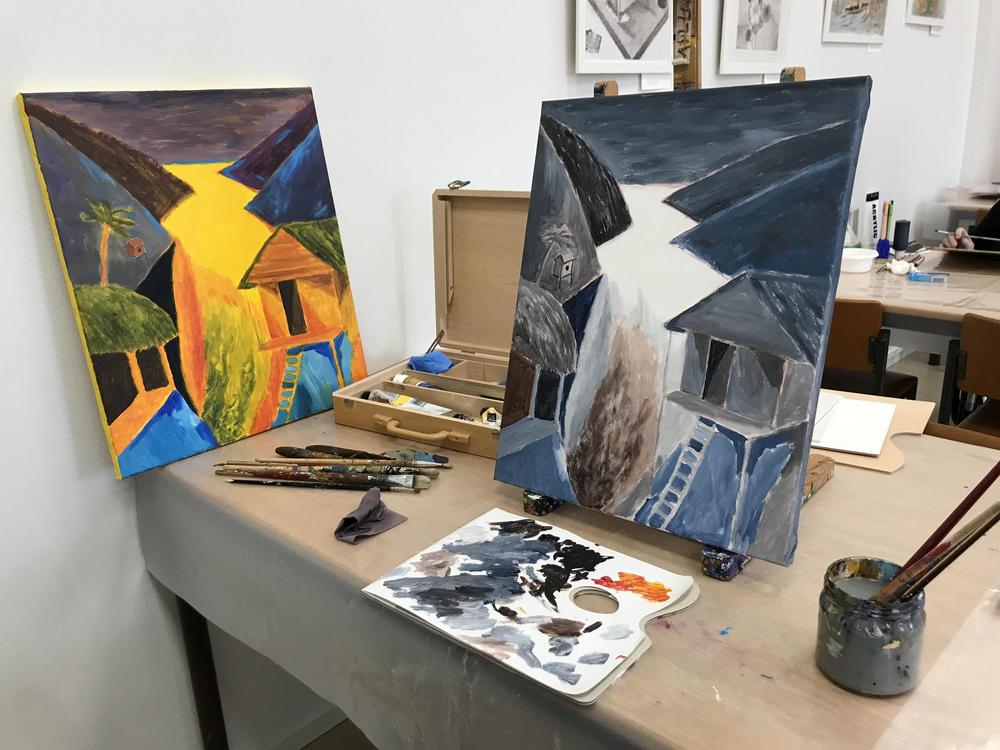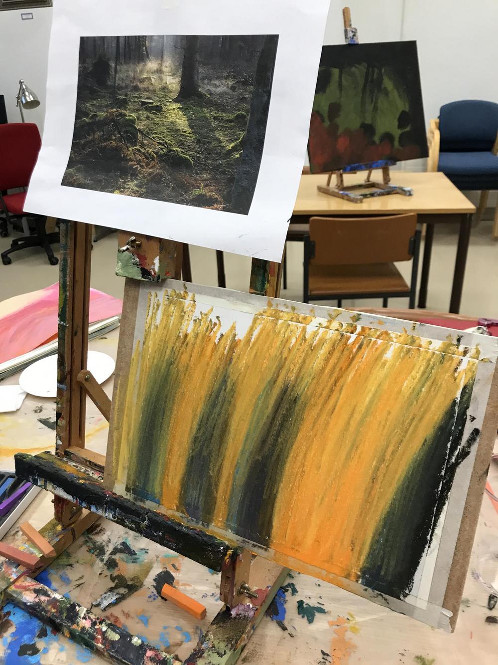 Työskentely kerhossa tapahtuu vapaavalintaisesti maalauksen ja piirustuksen tekniikoilla. Ryhmässä tehdään pääasiassa akryylimaalauksia, minkä lisäksi voi kokeilla vaikkapa akvarelleja. Öljyvärejä ja niiden käyttöön liittyviä maalausnesteitä sekä liuottimia, kuten tärpättiä emme käytä. Piirtää voi mm. lyijykynä, hiili- ja värikynätekniikoin.